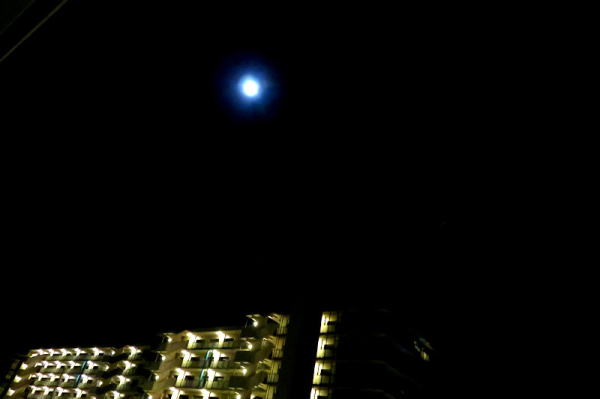↑南の空の満月 (23:38分) |