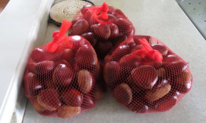 ↑広い畑や竹林をもっている友人から栗送っていただきました。とても大きな実です。
