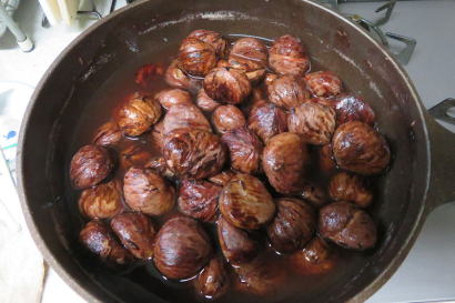 右側は何回か煮こぼした状態です。渋皮はもっときれいにとった方が良い