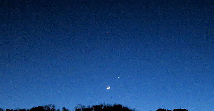 ↑ 月と金星と木星 (18:05分) (ベランダから)