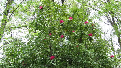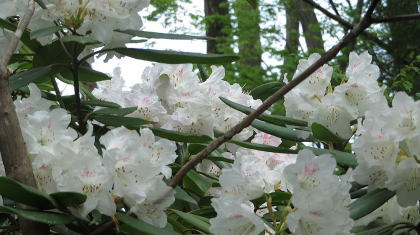 (4)裏のベランダにある小さい木のユスラウメは、満開です。