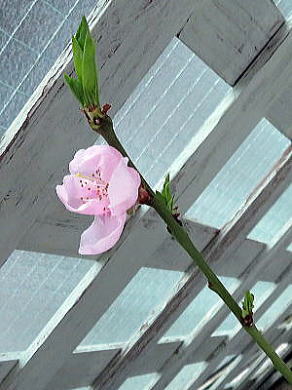 うしろにある桃、一輪開花しました。枝ぶりが良くないですが、