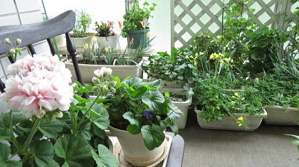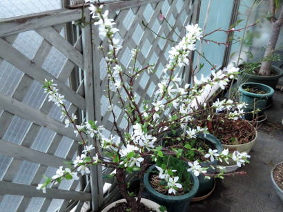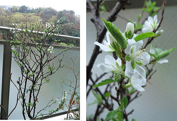 (3)ベランダの中のユスラウメも 咲き始めました。