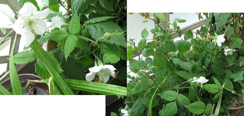 ↑ ベランダでは、いつの間にか野いちごの花が沢山咲いていました。