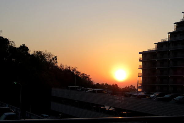 本当にしばらくぶりに、14階まで行って 日の出を見てきました。