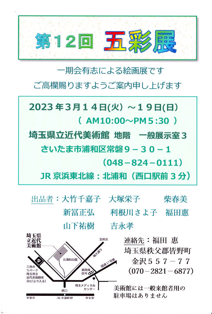 一期会のホームページの更新もでき、五彩展のページを載せることが出来ました。