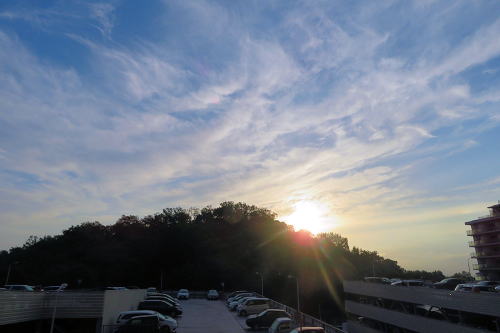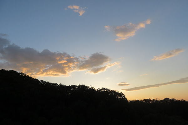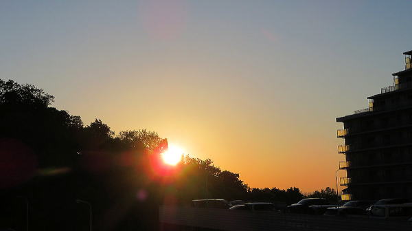 ↑ポーチからの日の出(5:15) <今日の東京の日の出 4:25>