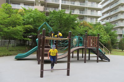 | ↓帰り道、我がマンションの庭にも寄りました。 |