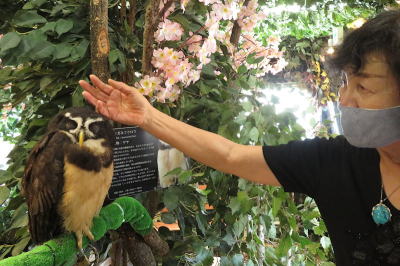 ほんもののフクロウとふれあえるという「フクロウの森 」に寄りました。