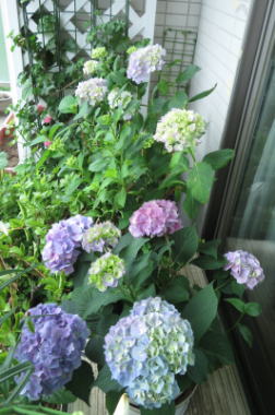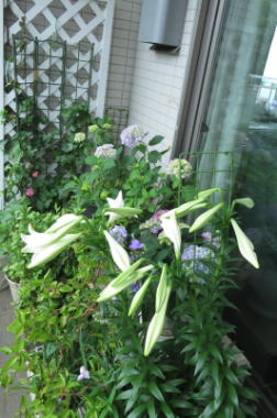 | ↑アジサイが 咲きました ↗テッポウユリの蕾みも 大分膨らんできました |