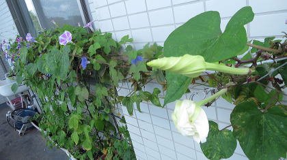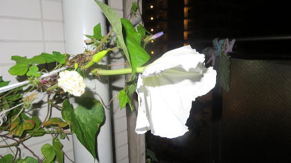 白花夕顔は 苗を2つ買ったのですが、つぼみは大きく立派なのですが