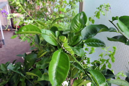 ↑アゲハの幼虫は、涼しくなったら沢山現れて 一時15匹もいました。