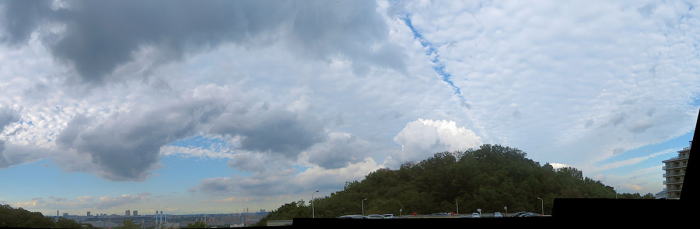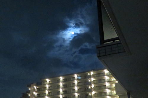 ↑雲の切れ間から 満月と重なった中秋の名月 (ポーチから東の空)