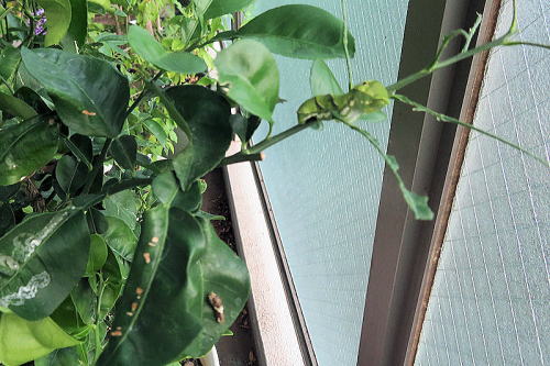 いくらか涼しい日もあったからでしょうか、いつのまにか青い幼虫が