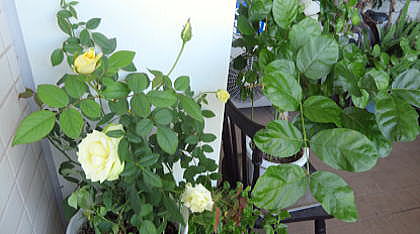 右側のジャスミンは、南側のベランダに置いてあったものを東向きの