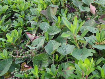 マンション下の歩道の植え込みの中に毎年、野ブドウが出てきます。