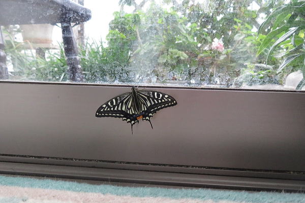 ↑ ベランダ掃除をしていたら 排水溝の近くにアゲハチョウが