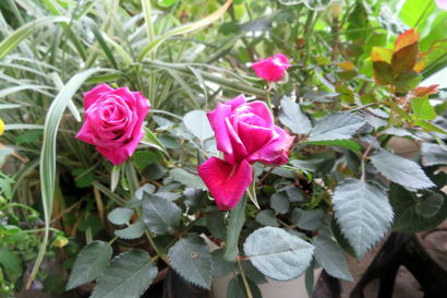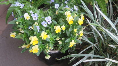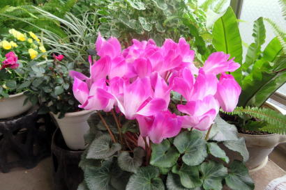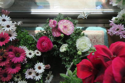 ゼラニウム、ミニバラ、シクラメン、ビオラ> |