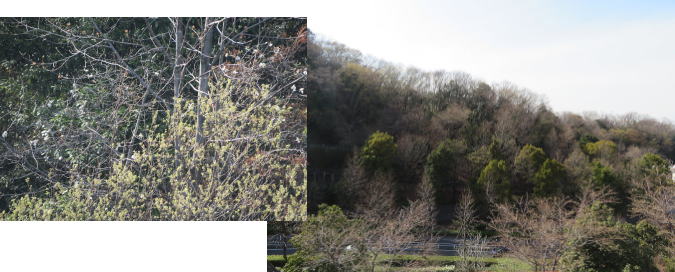 ↑ マンションの桜も そろそろ葉桜、城山もすっかり緑になりました!