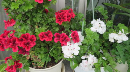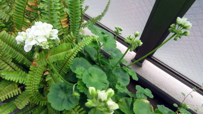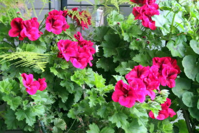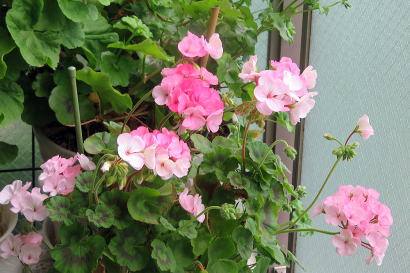 ↓ ポーチの花<ペラルゴニウム、 アイビーゼラニウム、