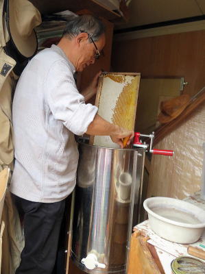 みんなで作業を体験させて頂き(蜜蓋の切りとり、遠心分離機で蜂蜜の