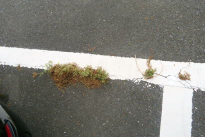 ↑ 駐車場のコンクリートの小さな隙間から生えてくる雑草