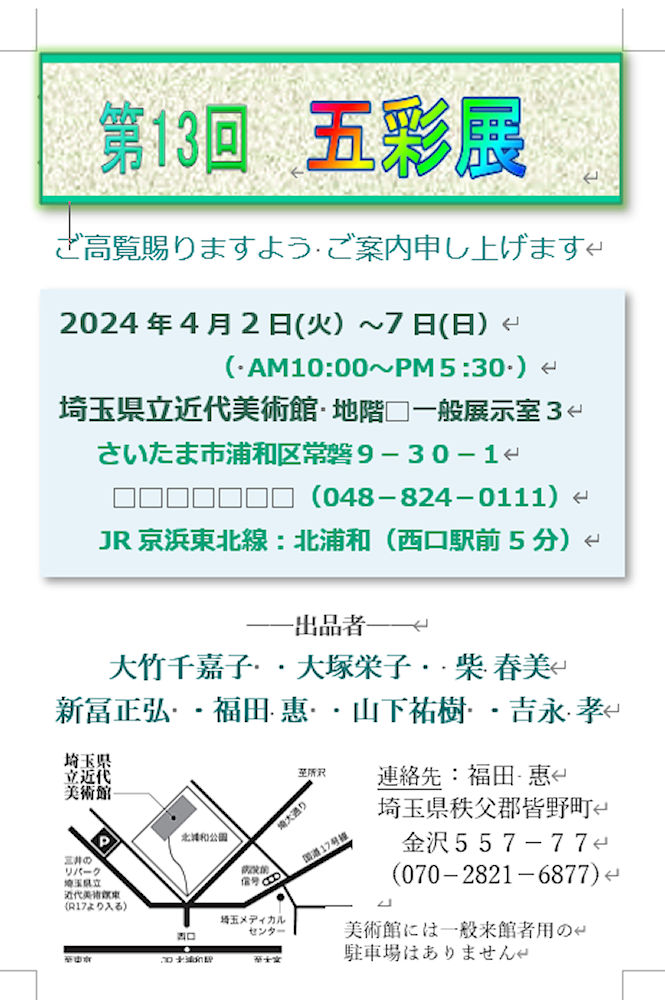 | 2024年4月6日-1 五彩展「埼玉県立近代美術館 地下1階 一般展示室」 |