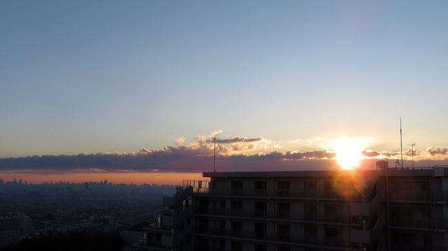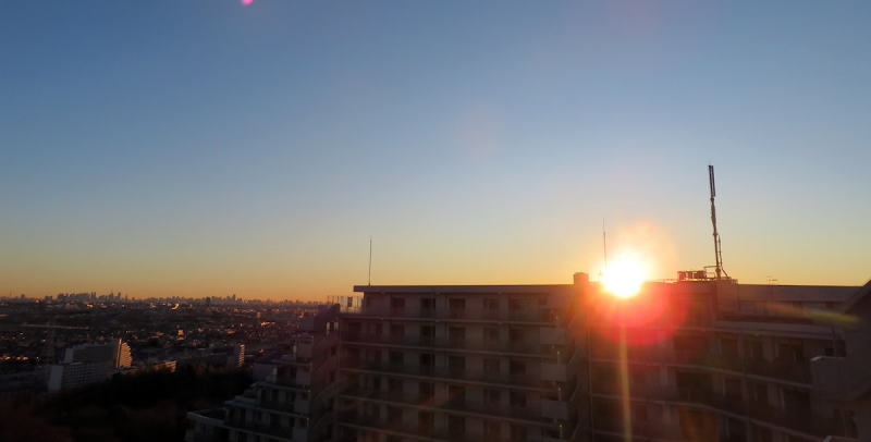 ↑ 14階共用廊下から(6:58分) <今日の東京の日の出6:39分>