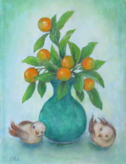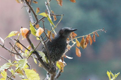 ↑ ベランダのデュランタの枝にミカンを刺しておいたら