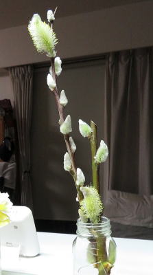 お花屋さんで買ってきた花束の中のネコヤナギ、