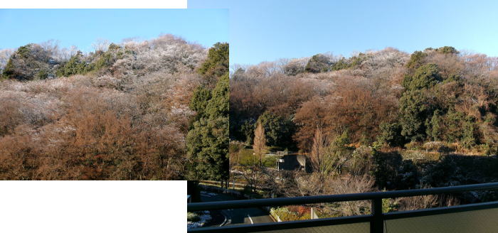 朝起きたら 目の前の城山に うっすらと雪が積もっていました!