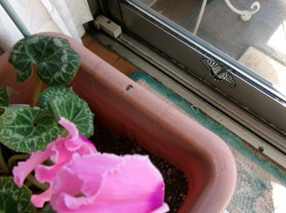 ずっと窓枠に張り付いていて 時々羽ばたいていました。