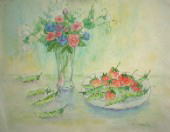 野菜は、果物に比べると、本当に いろいろな形をしていて 感心します。 とても 魅力的な素材なのですが、描くのは、むずかしい。 土くさくて、みずみずしくて、おいしそうな感じがでません。 育てるのも、むずかしいです。種をまく時期 苗を植える時期が決まっていて、 きままな畑仕事をするものには、たいへんです。 その点 花はその土地にあえば、球根 宿根草はもちろんこぼれ種で、 毎年咲いてくれます。 (2002.2) |