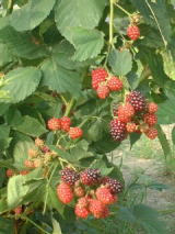 枇杷の季節です。枇杷もとても魅力的な素材です。 実のなり方も,色も可愛いし、ごつい感じの葉も面白いですね。 畑では、ラズベリーの収穫がはじまりました。 まめにいかないと、すぐ落ちてしまいます。 少ない時は、冷凍しておいてから、ジャムにします。 ブラックベリーは、ラズベリーより少し遅れて 色づき、ラズベリーの収穫が終わった頃 黒くなってきます。 とても すっぱいので、果実酒にします。 毎年、ブラックベリー酒と青じそ酒を2瓶ずつ作るので、飲み切れません。 (2002.6.) |
