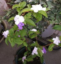 ・花色は咲き初めが紫色で、数日たつと次第に白くなるので、2色の花が咲いているように見える。