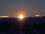 | 2005年1月1日 元旦 (土) 晴 昨日の雪も、夕方にはやんで、朝はすっかり晴れて、日の出前には、東の空に 明けの明星が輝いて きれいでした。(写真は撮れなかった) ただ、東の空の下の方は、雲がおおっていて、日の出が遅くなりました 富士山も すっかり白く雪化粧、朝焼けの中 奇麗に、そして近くにみえました。 ![]() 朝焼け(7時5分ごろ) 日の出(7時7分) 朝焼けの富士(7時7分ごろ) |