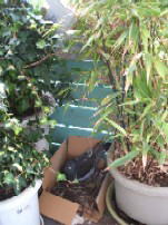 6月15日(水) 鳩の巣騒ぎ 3月頃、ベランダに巣作りをしたくてかなりしつこく来ていた鳩も、今年はあきらめて 来なくなりましたが、5月頃から又よくやってくるようになりました。 (大きい鳩なので、おととしベランダで産まれた鳩かもしれないということになりました) 掃除したり物の位置を変えたり、夫がCDをぶら下げるといいという情報を仕入れて きてぶら下げたら、暫くの間はやってこなくなりました。 安心していたら、土曜日の朝、ベランダ掃除をしていた夫が巣を作っているよという のです。植木鉢の間の狭いところに巣を作っていました。 仕方ない、可哀想だから、作らせてやろうということになり、植木鉢の間を広げて、 空き箱を置き、巣をのせておいたら、夕方には、2羽で入っていました。 次の日(6月12日)にはもう卵を産んでいました。 |