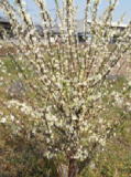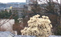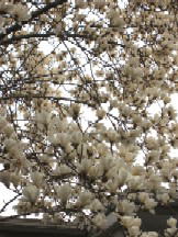 4月5日(火) 窓辺からみえるよそのお庭のこぶし。 とても奇麗なので、毎年楽しみに しています。 右の写真は、庭の外からとらせてもらいました。 こぶしが終わるころ、後ろのバス通りの桜と ベランダの目の前の桜が咲きます。 |