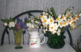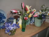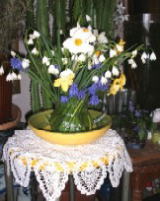 | 4月15日(金) 今年になって、初めての畑仕事。草取り。あんまり、草だらけで、どこの草を取ったのか分らない。 ブロッコリーの苗を5株植える。色々な花を収穫。近くにすんで入る友人3人に花を、くばってきました。 色々な花瓶にいけて、家中に花を飾り終わると、随分時間がかかりますが、とても幸せなときです。 ![]() リビング、玄関、玄関の外、キッチン |