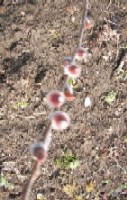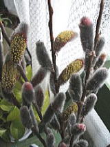 3月10日(木)曇り 畑のピンクネコヤナギ、やっぱりグレーでした。 花穂が出てきた時はピンクでも、だんだんねずみ色になるようです。 飾っているうちに、黄色い花が咲きはじめました。 黄色の花の根元の葯(というそうです)は紅色です。 ←先の方の蕾の殻が付いていた部分は、ピンク色。 |