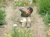 2005年5月5日(木)晴れ 何かと忙しい10連休です。今日は、孫たちと狭山市の智光山公園の動物園 にいってきました。(まわりを見回すと、おじいちゃん、おばあちゃんと若夫婦に 孫というグループが多い) そして、お昼寝の終わった孫と夕方、畑に。 連休に入ってから2人で草とり、野菜の苗植え(なす、キュウリ、トマト)、 野菜と花の種まきをしてあるので、大分畑らしくなっています。 ←今年はなぜか白い矢車草が多い |