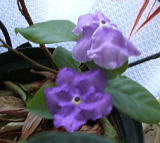 2月15日(火) 晴れ 今年も咲いた香りばんまつり......咲き始めは濃い紫色で、次第にうすくなり、 白色になります。かすかによい香りがします。 |