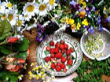 ![]() 今日の収穫 (矢車草、桃色月見草、露草 マーガレット、ばら、カモミール ビオラ、ミント、いちご) |