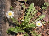 4月6日(水) 歩道の脇に咲いていた白いたんぽぽ 20年以上まえに、ここに越してきたときには、あちこちに群生してたくさん咲いて いた白いたんぽぽ、最近は少なくなりました。 綿毛を取ってきて畑やプランターにまくのですが、芽が出てきません。 |