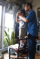 6月18、19日 昨日から、次女が帰ってきているので、長女と孫は、2日とも遊びにきました。 夫は、孫は来るし、父の日のプレゼントはもらうしで、ご機嫌でしたが、私は疲れた。 ←おじいちゃんと、双眼鏡で、何を見ているのかな |