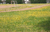 4月18日(月) お隣にある、県立狭山高校のグランド一面にタンポポが咲いていました。 春一杯という感じがして、また、なんとなく高校生時代を懐かしく思い出し、 写真を撮らせてもらいました。 |