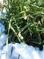 2005年1月2日 晴 暖かいお正月です。娘(二女)と3人 で、広瀬神社にお参り。 千円のお賽銭で、家族(孫や親まで)の 健康と世界の平和と地球の平穏まで、 色々お願いしてきました。 帰りに畑に寄ってみました。 ←広瀬神社の大けやき(樹齢7〜800年) ←雪の残っている畑 ←雪で折れている水仙 |