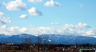 府中、国分寺の向こうに秩父の山々が見えるようになりました。