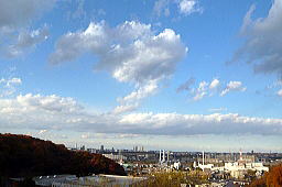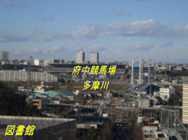 府中の町もよく見えますが、遠くは雲がかかっていて山並みはみえません。