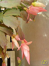 ↑蕾いろいろ (1)バラの蕾が二つ (2)シャコバサボテンがいろいろ咲き始めました。